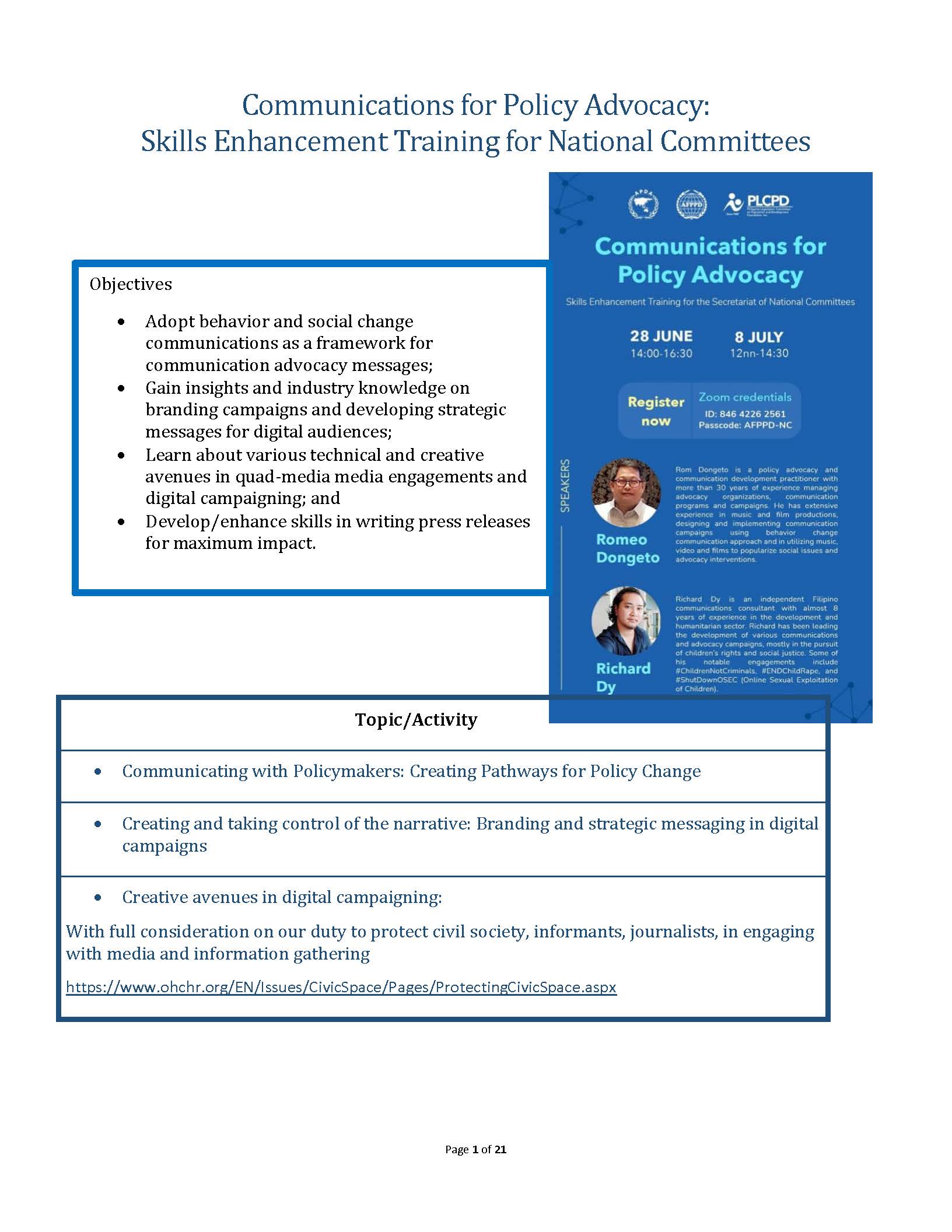 Communications for Policy Advocacy Digital Campaigns Learning Session for the Secretariat of National Committees